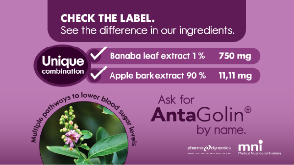 AntaGolin contains a blend of plant-derived phytochemical ingredients that combats insulin resistance and optimises blood-sugar metabolism. This unique combination supports multiple pathways involved in the input, output and processing of sugars in the body and the optimal regulation of metabolism.