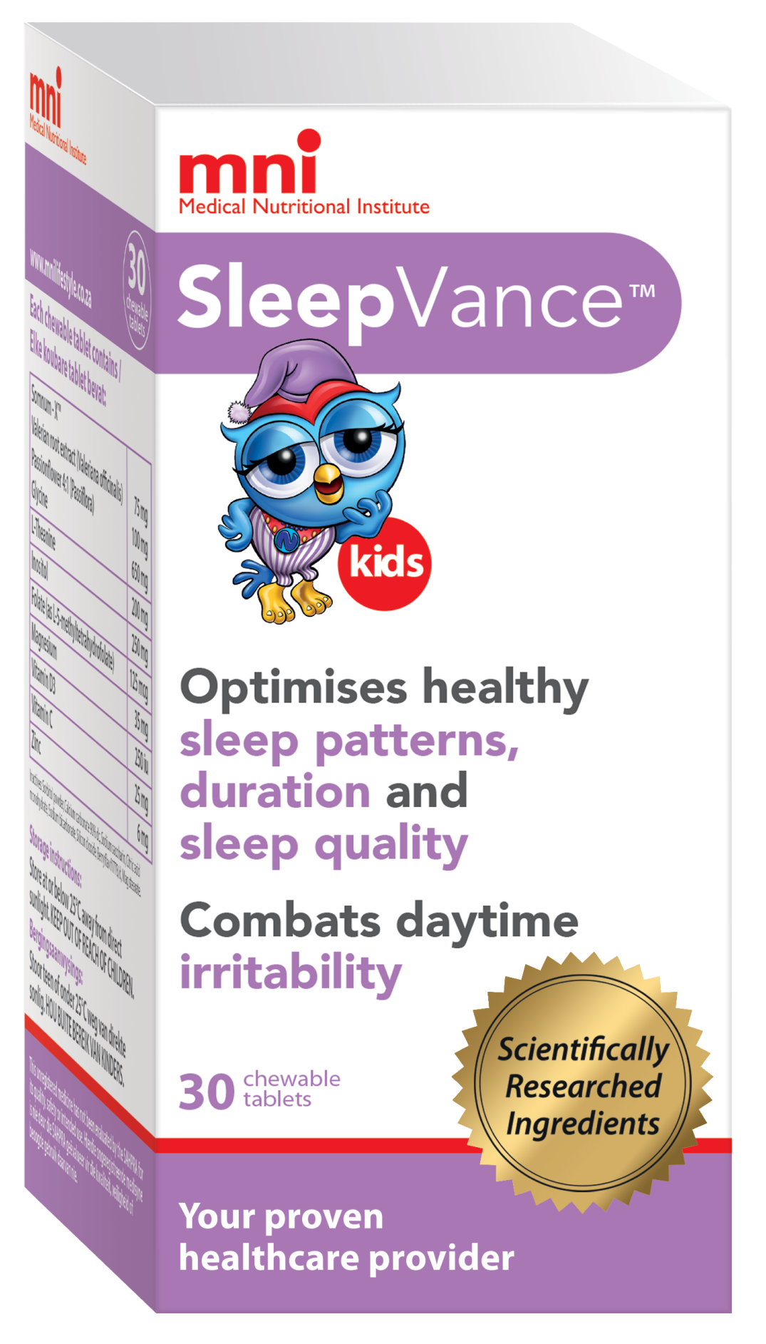 SleepVance kids contain a unique blend of plant-derived phytochemical ingredients and nutrients that has been developed to optimise healthy sleep patterns, improve sleep quality, maximise sleep duration as well as combatting hyperactivity and inattention in your child by targeting multiple neuronal pathways associated with these functions. By doing this, it has the ability to improve your child’s overall mental wellbeing and help them to function optimally, making it easier for them to complete their daily mental and physical objectives.